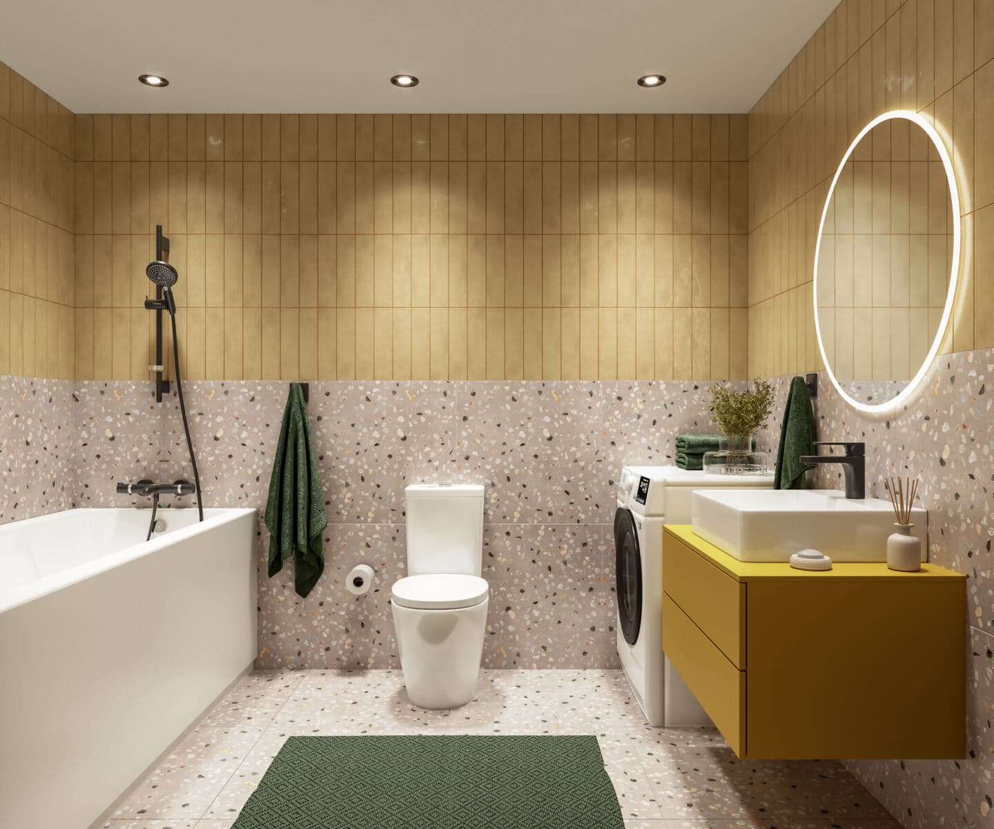 Цвет швов: Желтая плитка – Mapei 138, бежевый Серая плитка – Mapei 110 -