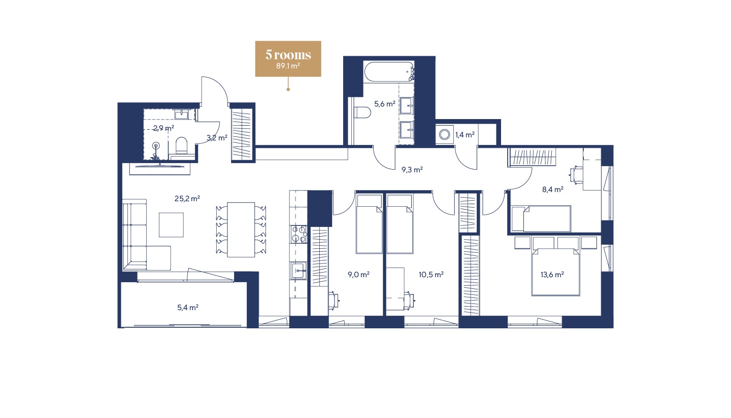 Energy efficiency is ensured by carefully selected building materials and well-considered technical solutions that provide an Energy Class A rating and keep monthly costs low.